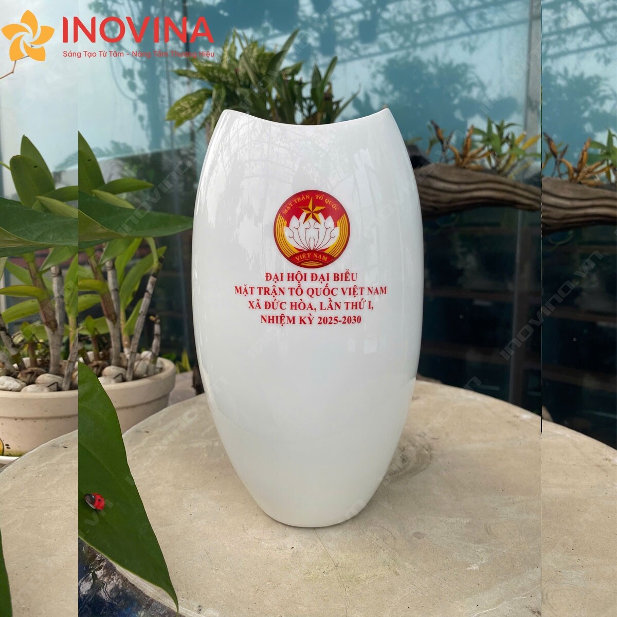 Bình Hoa Gốm Sứ Bát Tràng Miệng Lõm In Logo Quà Tặng KH
