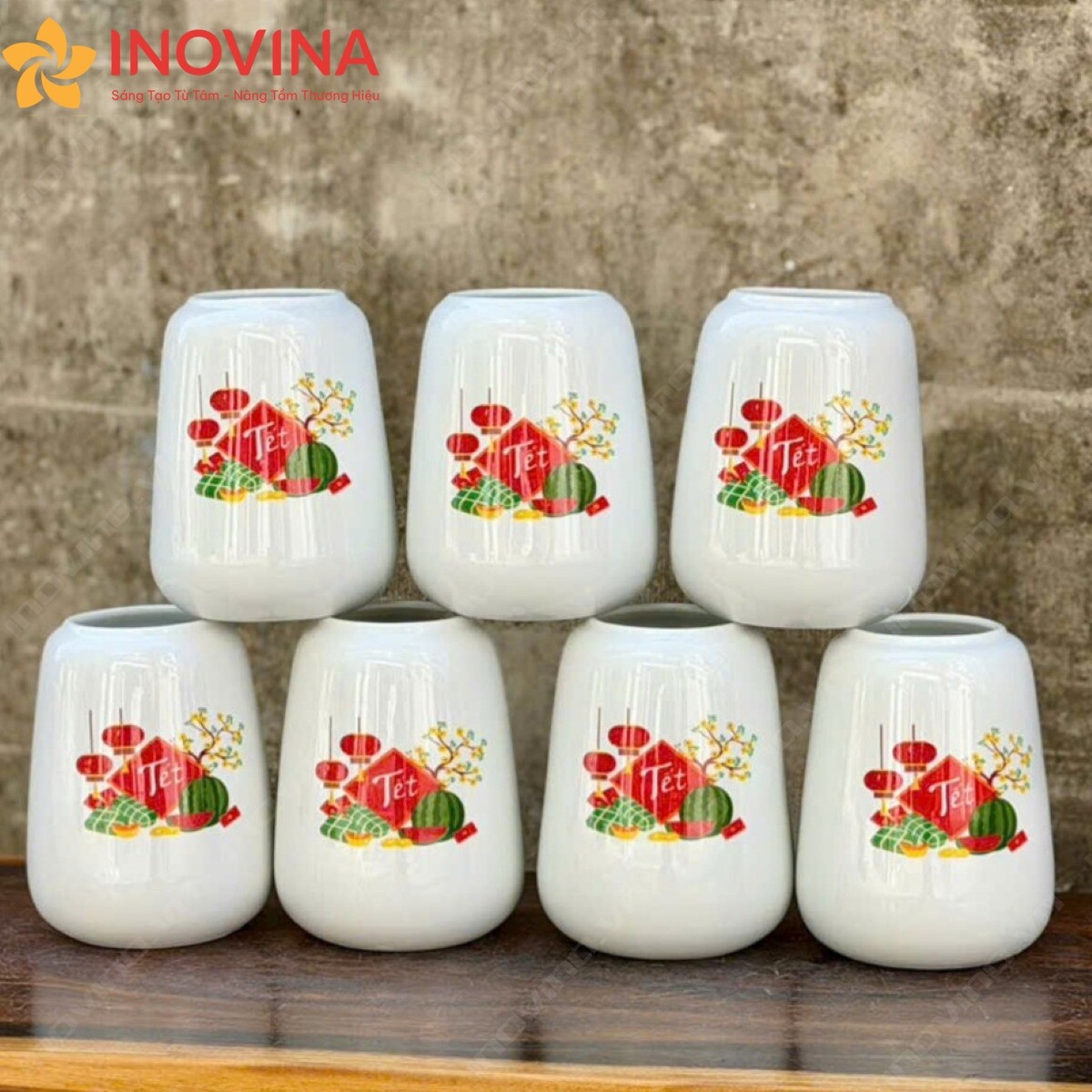 Bình Hoa Sứ Dáng Trụ Tròn Thấp Quà Tết In Logo