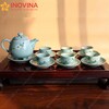 Bộ Ấm Trà Bát Tràng Dáng Mới 3 Chân Hoa Tuyết