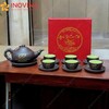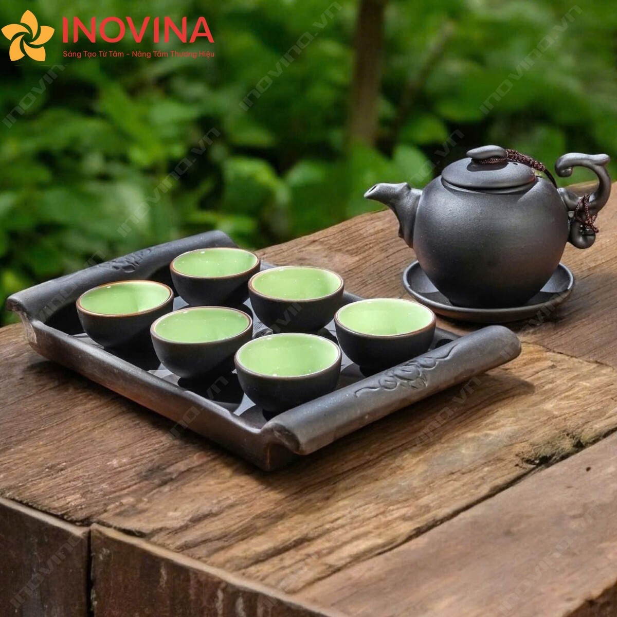 Bộ Ấm Trà Tử Sa Bát Tràng Dáng Rồng In Logo Quà Tặng DN