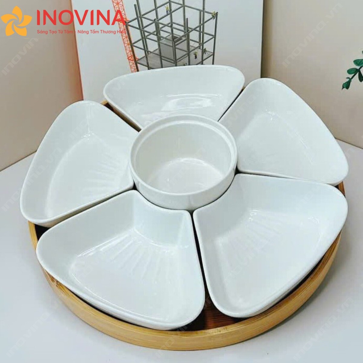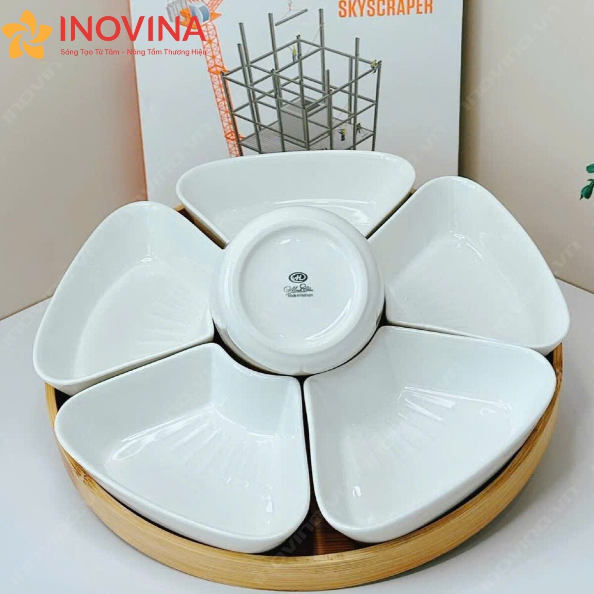 Bộ Bát Đĩa Hoa Mặt Trời Hoa Mai Men Trắng In Logo Giá Tốt