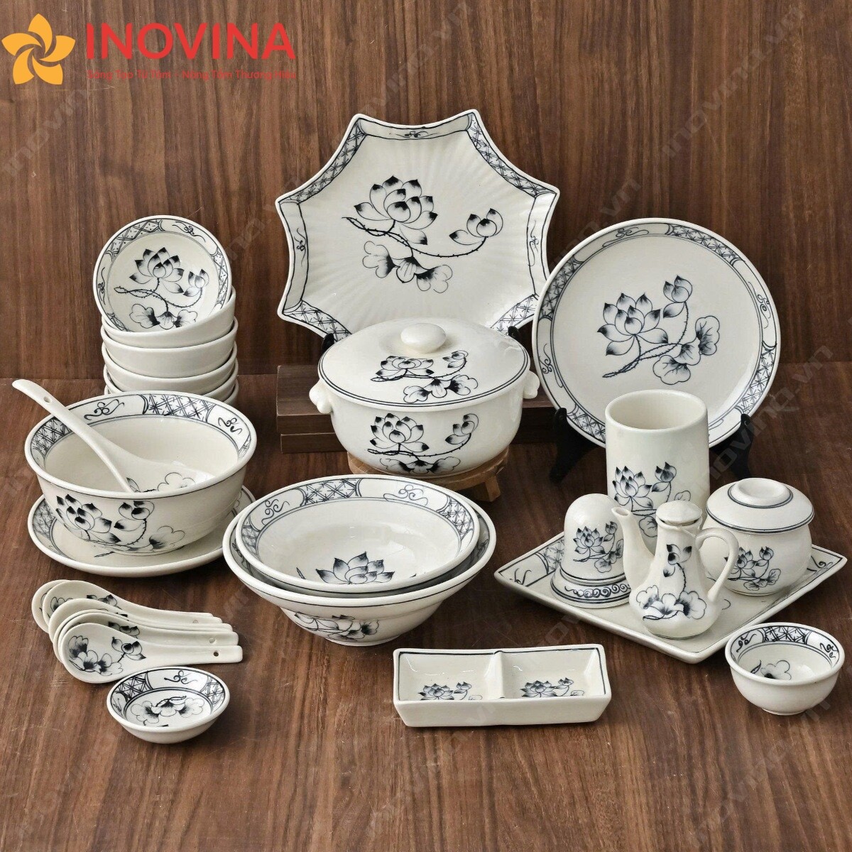 Bộ Bát Đĩa Hoa Sen Viền Hoa Văn Sang Trọng In Logo Giảm 20%