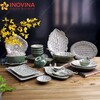 Tên sản phẩm: Bộ Bát Đĩa Men Lục Khắc Nổi Hoa Sen