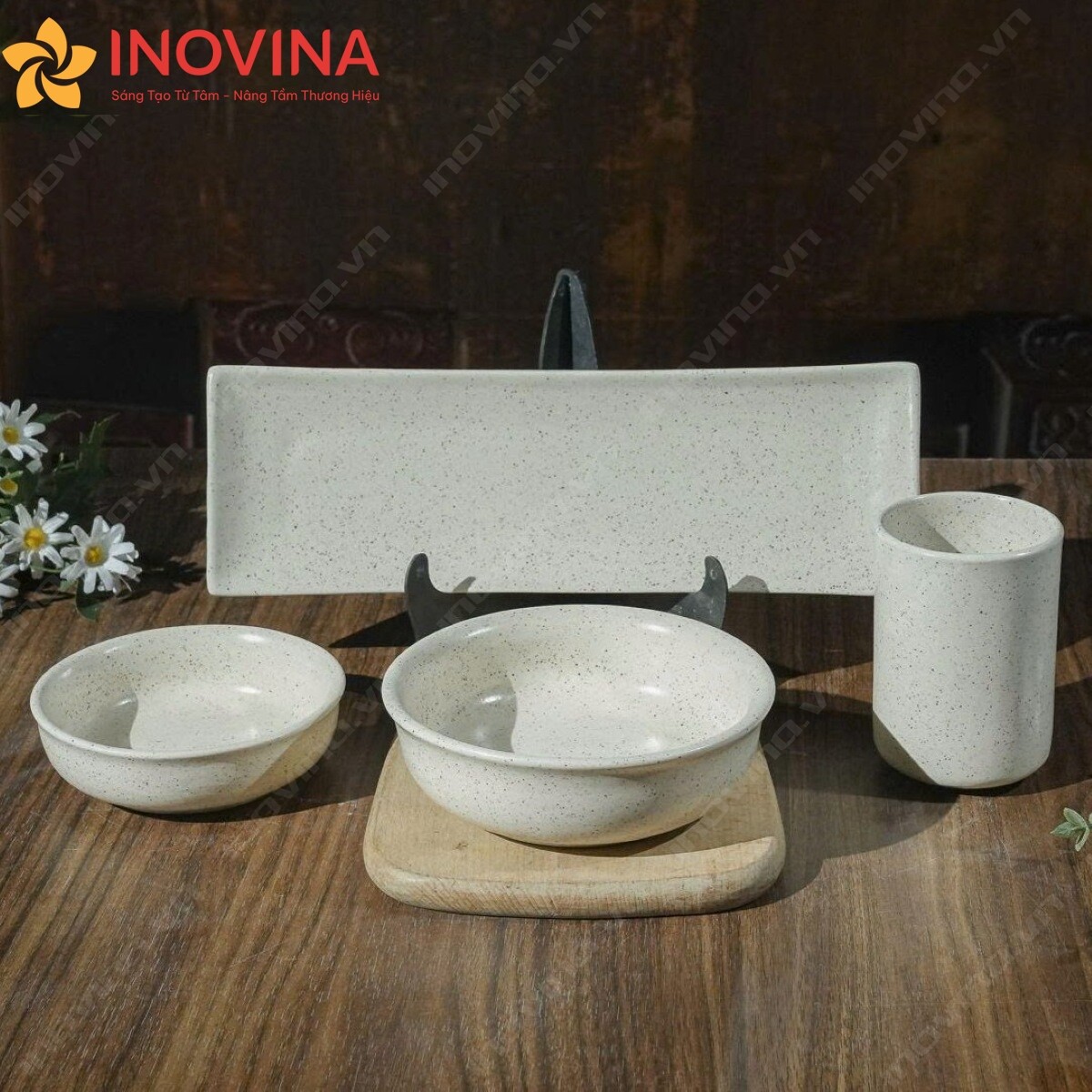 Bộ Bát Đĩa Men Tiêu Trắng In Logo Giảm 20%