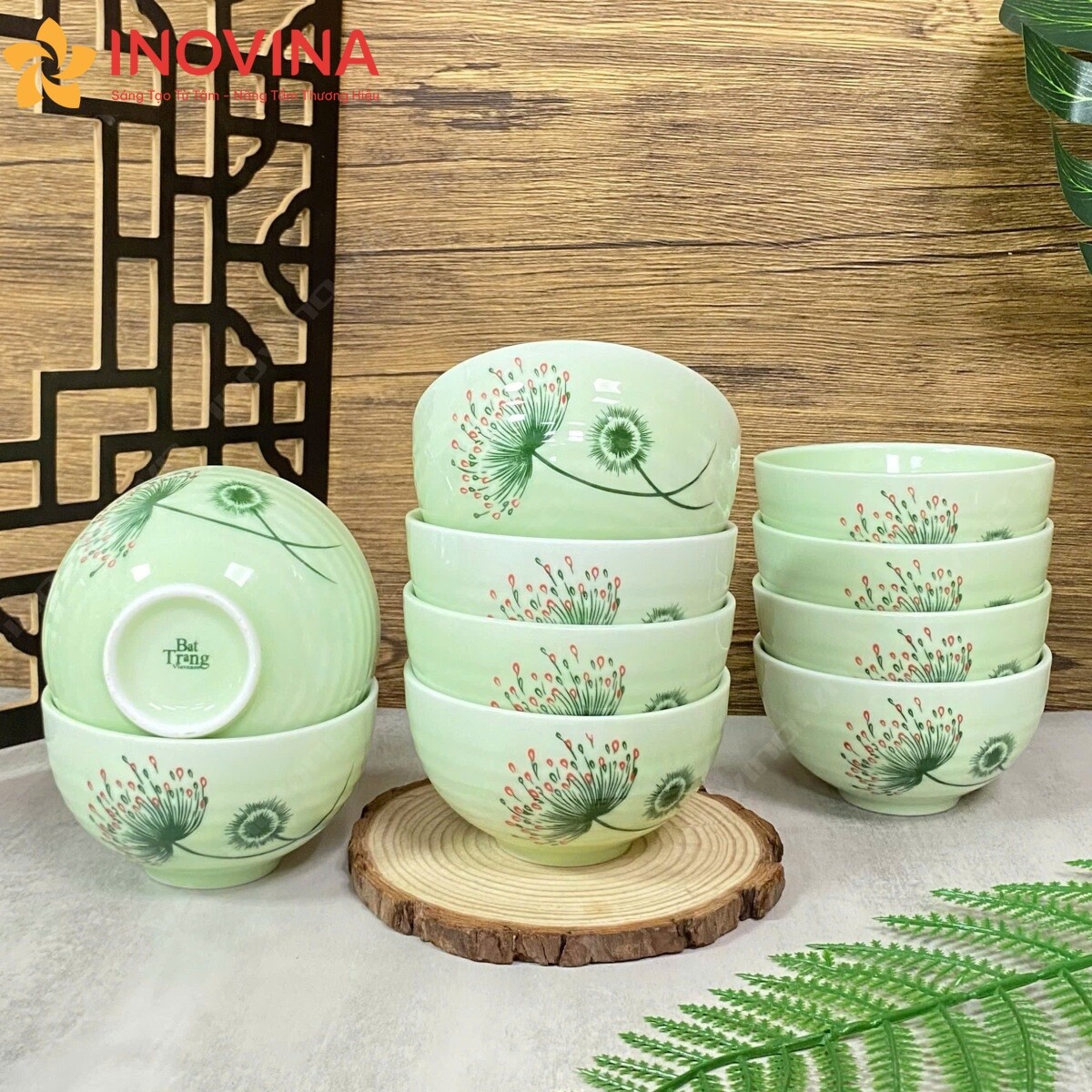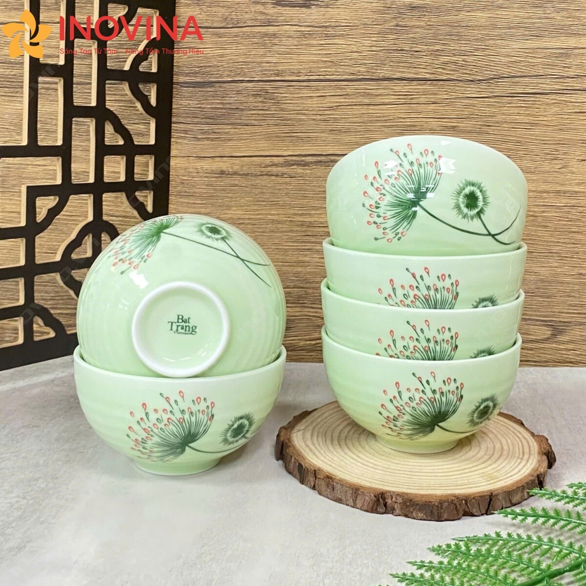 Bộ chén Bát Tràng Hoa Bồ Công Anh In Logo Quà Tặng KH