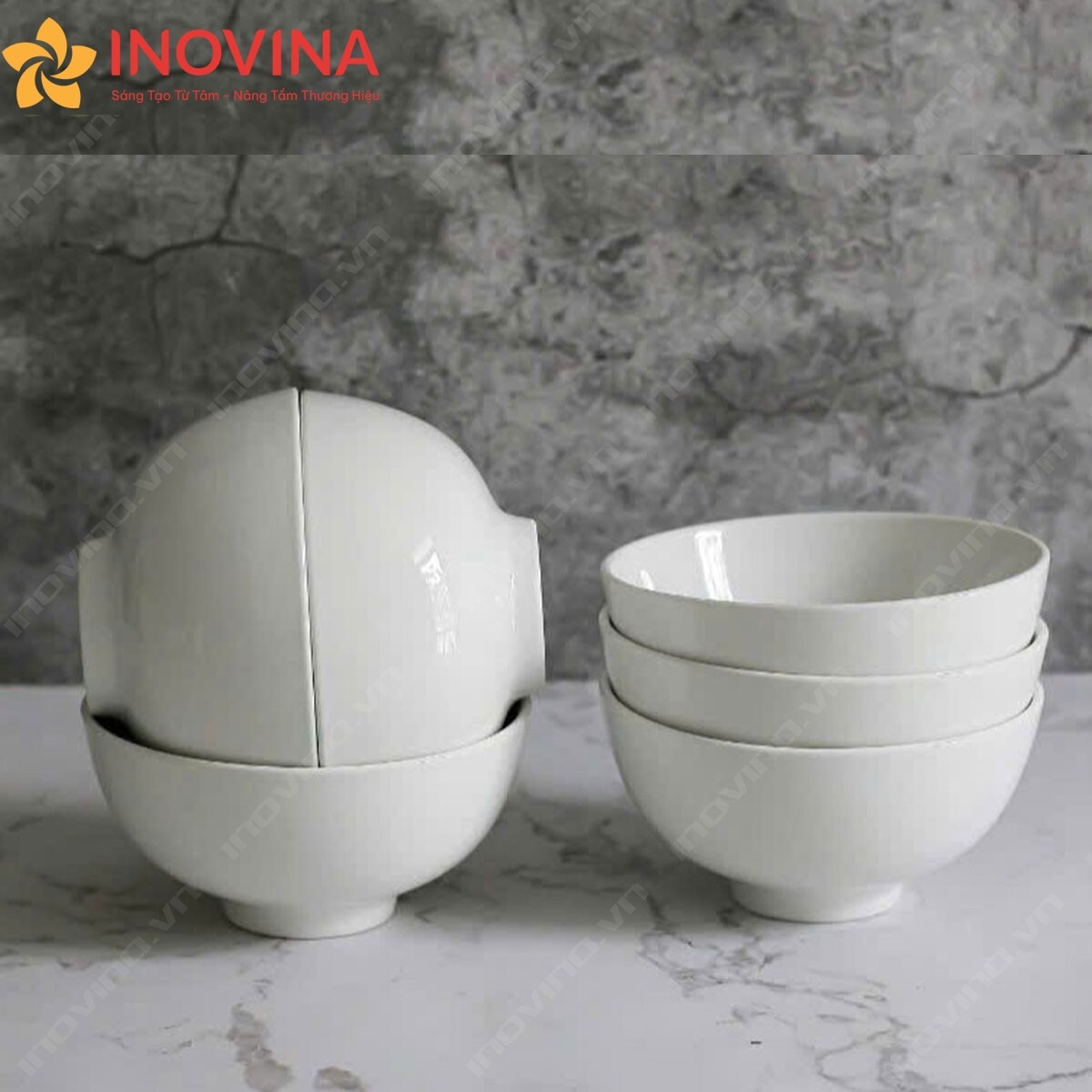 Bộ Chén Sứ Trắng Tròn Trơn In Logo Quà Tặng Khách Hàng