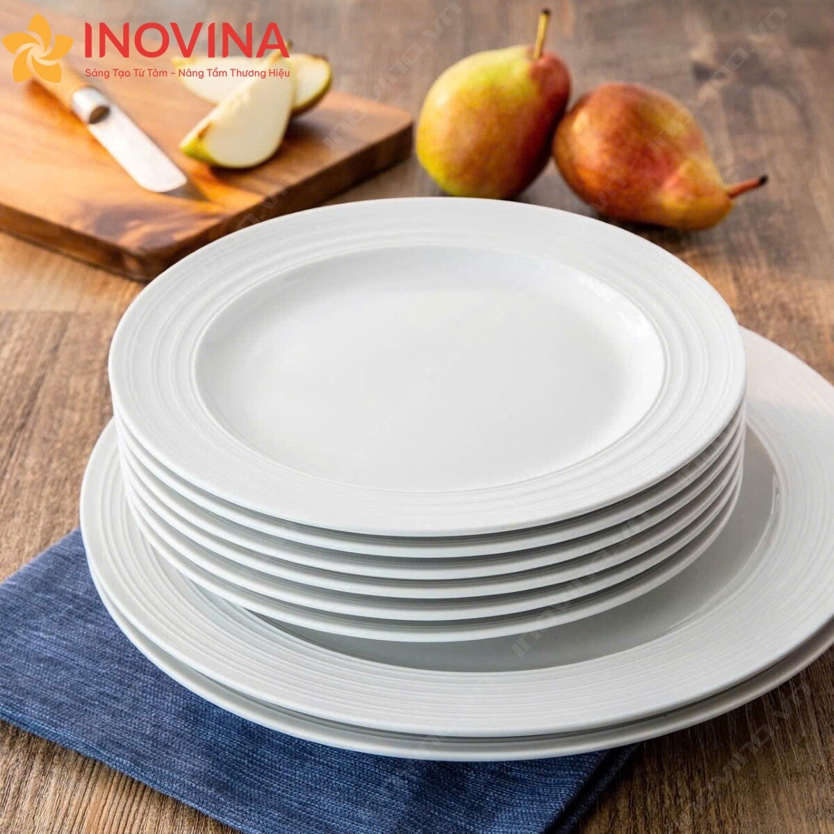 Bộ Đĩa Trắng Viền Sọc Mới In Logo Giảm 20%