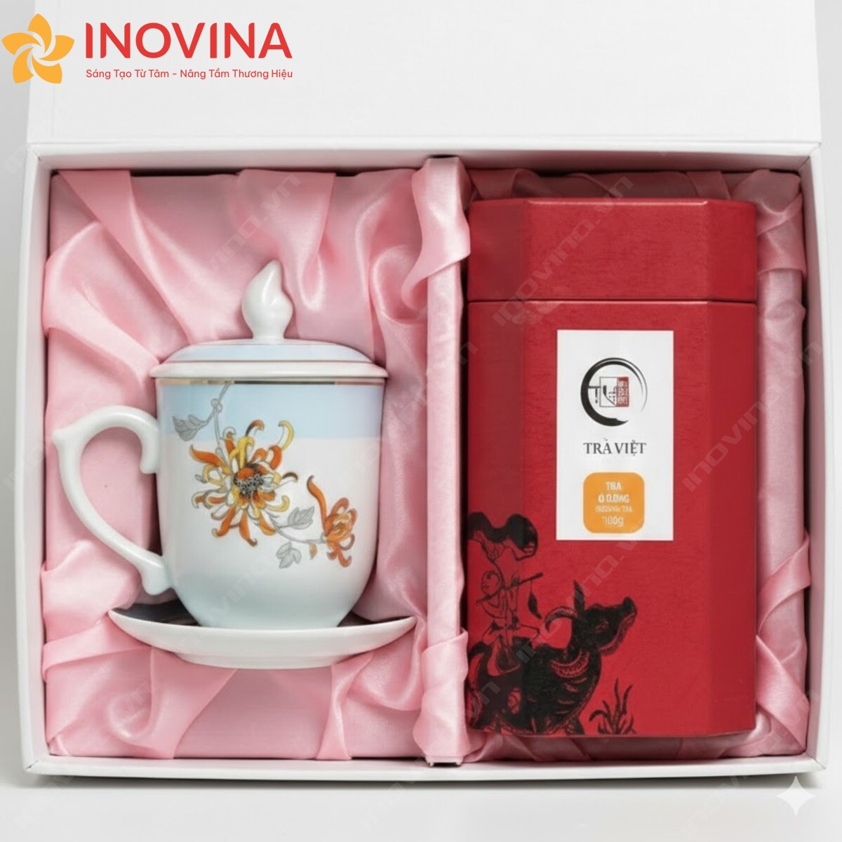 Quà Tặng Phụ Nữ Bộ Quà Tặng 8/3 Ly Sứ Và Hộp Trà Cao Cấp