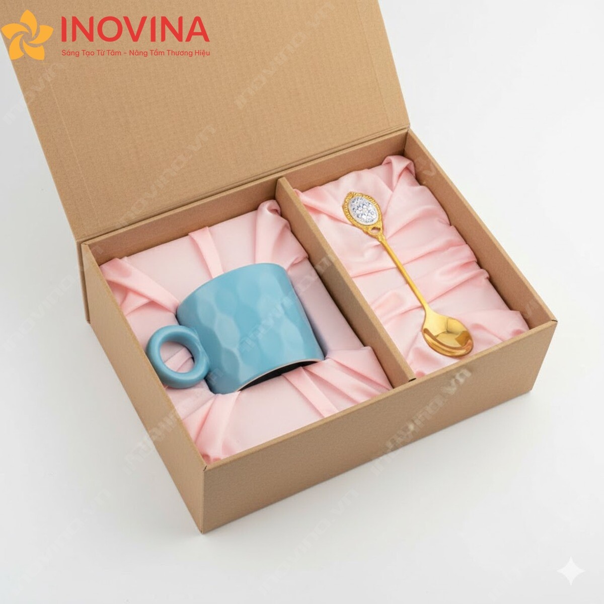 Bộ Quà Tặng 8/3 Ly Sứ Và Muỗng Inox Mạ Vàng