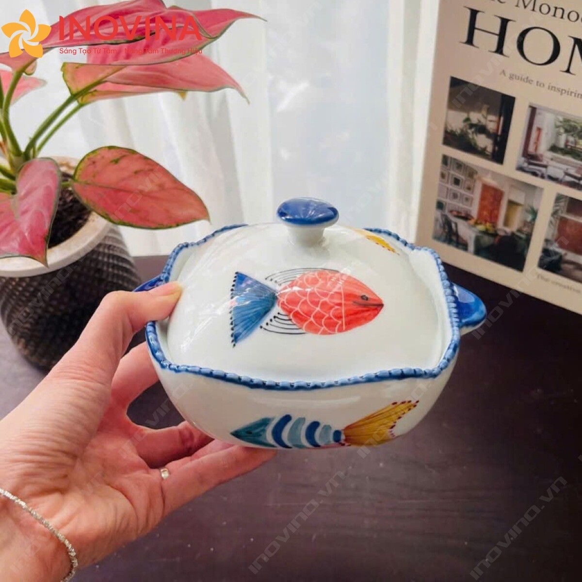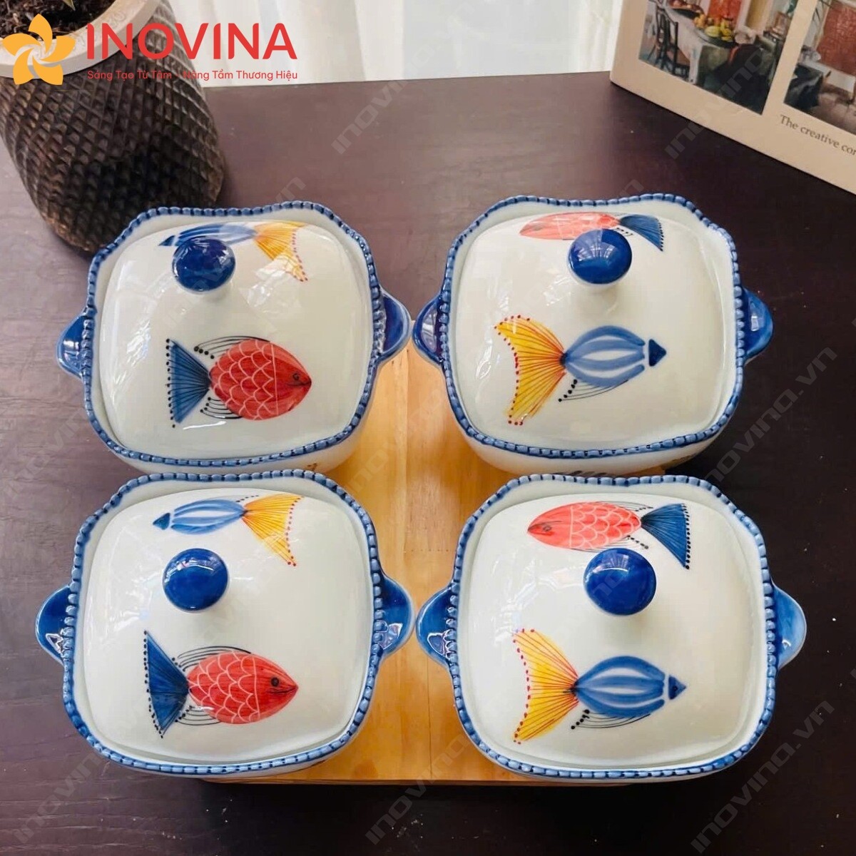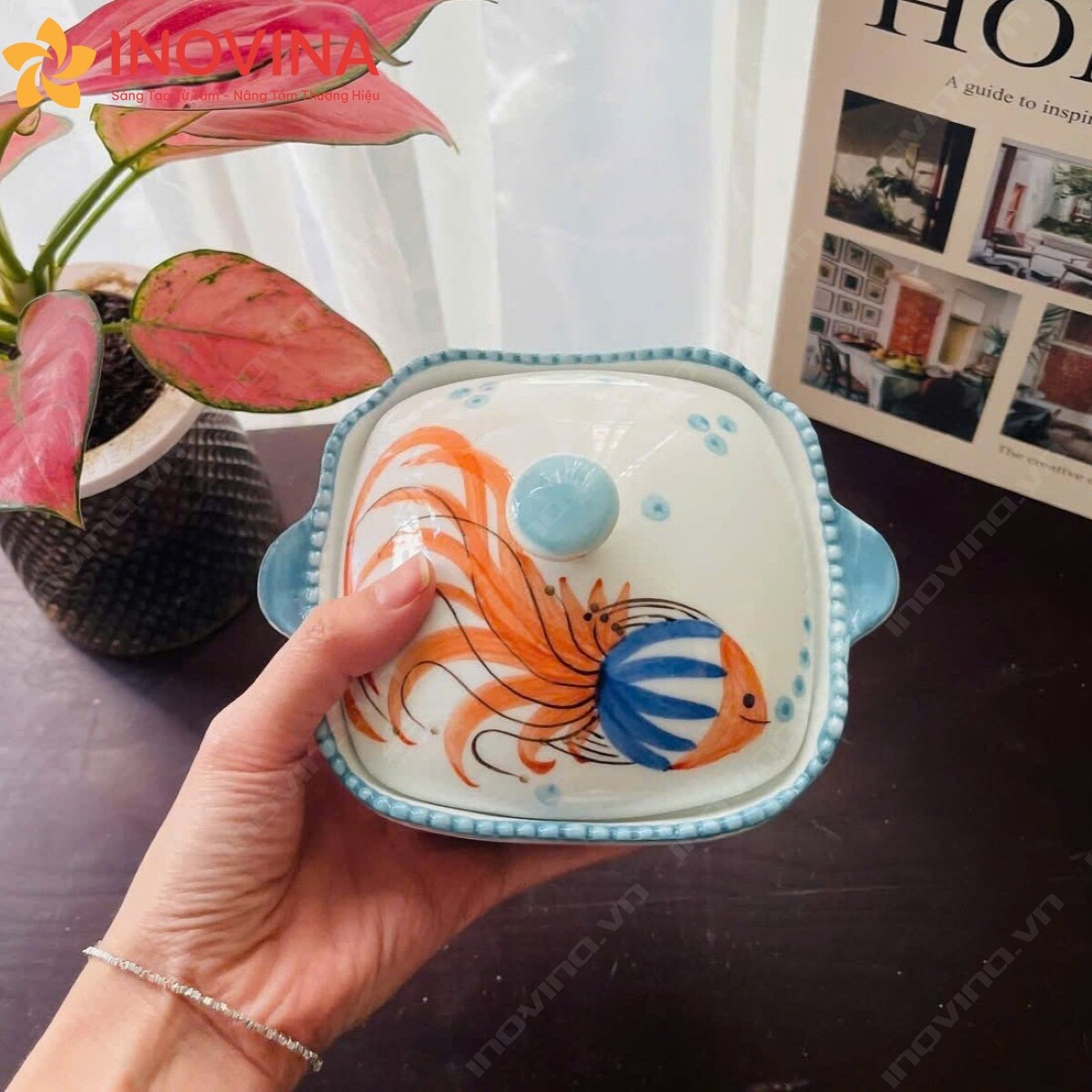 Khay Mứt Bát Tràng Dáng Vuông Viền Hoa In Logo Quà Tết 2026