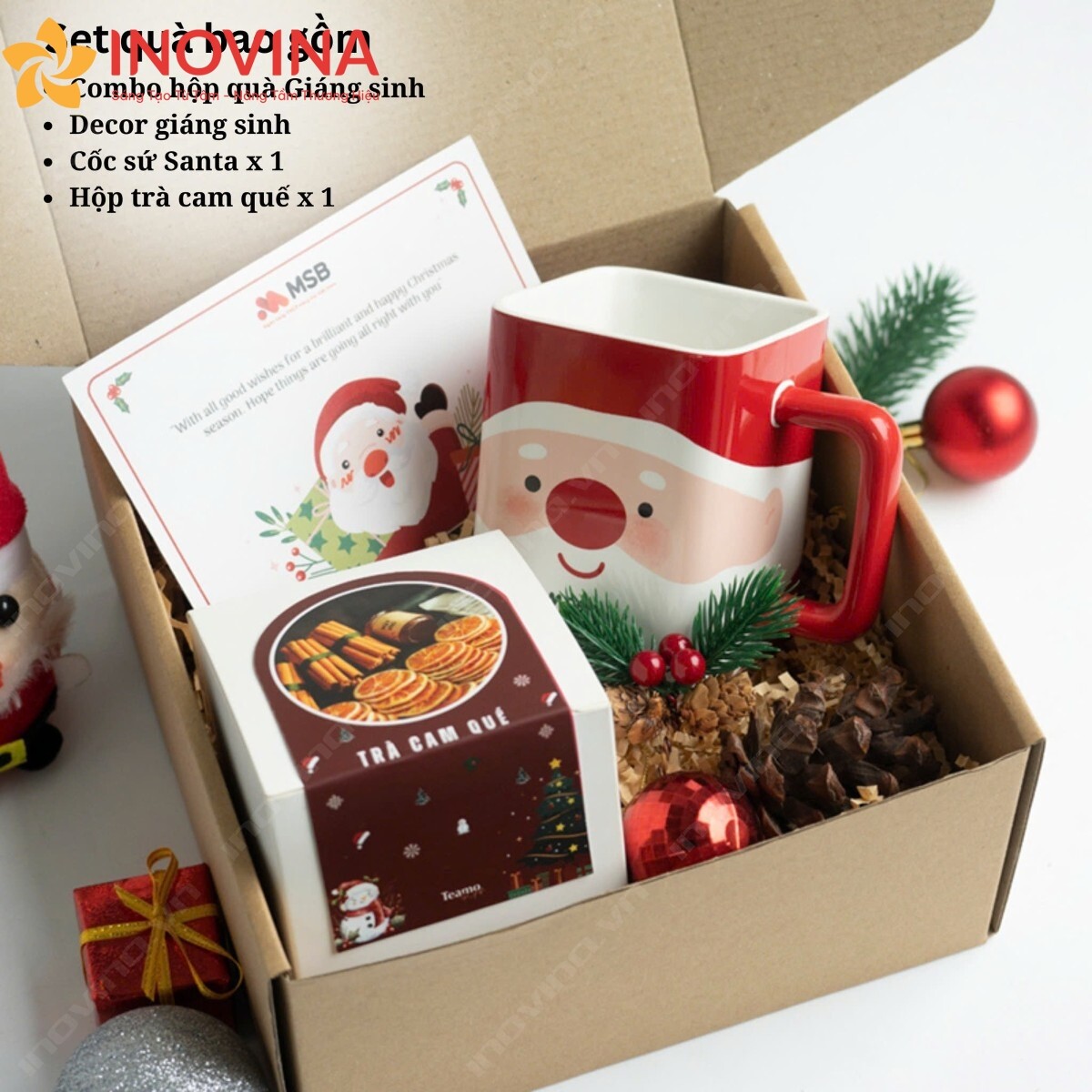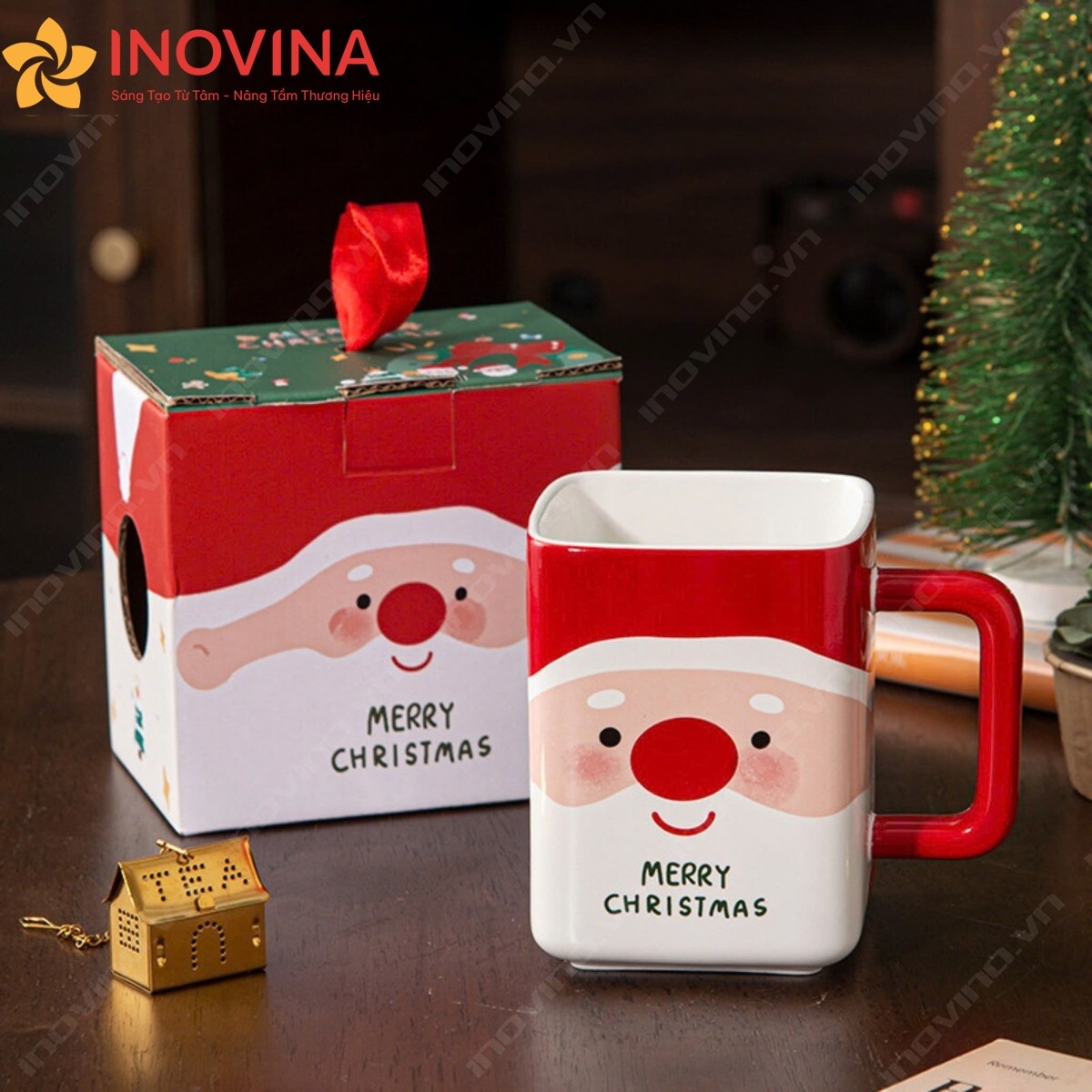Ly Sứ Giáng Sinh Dáng Vuông Có Tay Cầm In Logo Quà Tặng