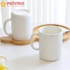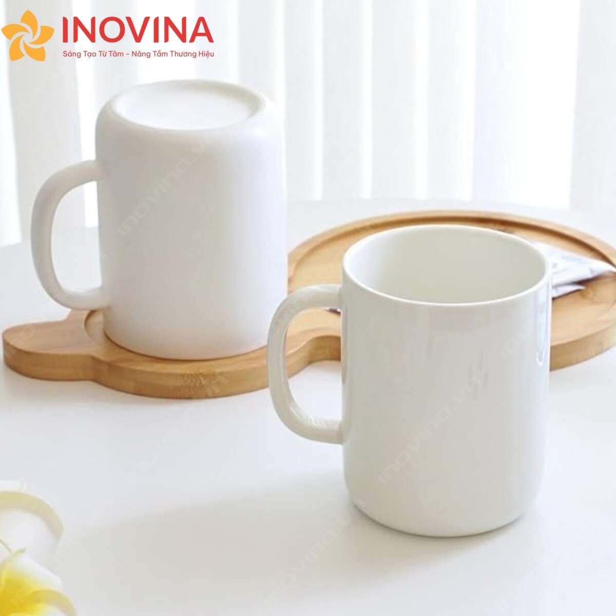 Ly Sứ Trắng Dáng Chữ Nhật Đáy Tròn In Logo Kèm Đĩa Quà Tặng