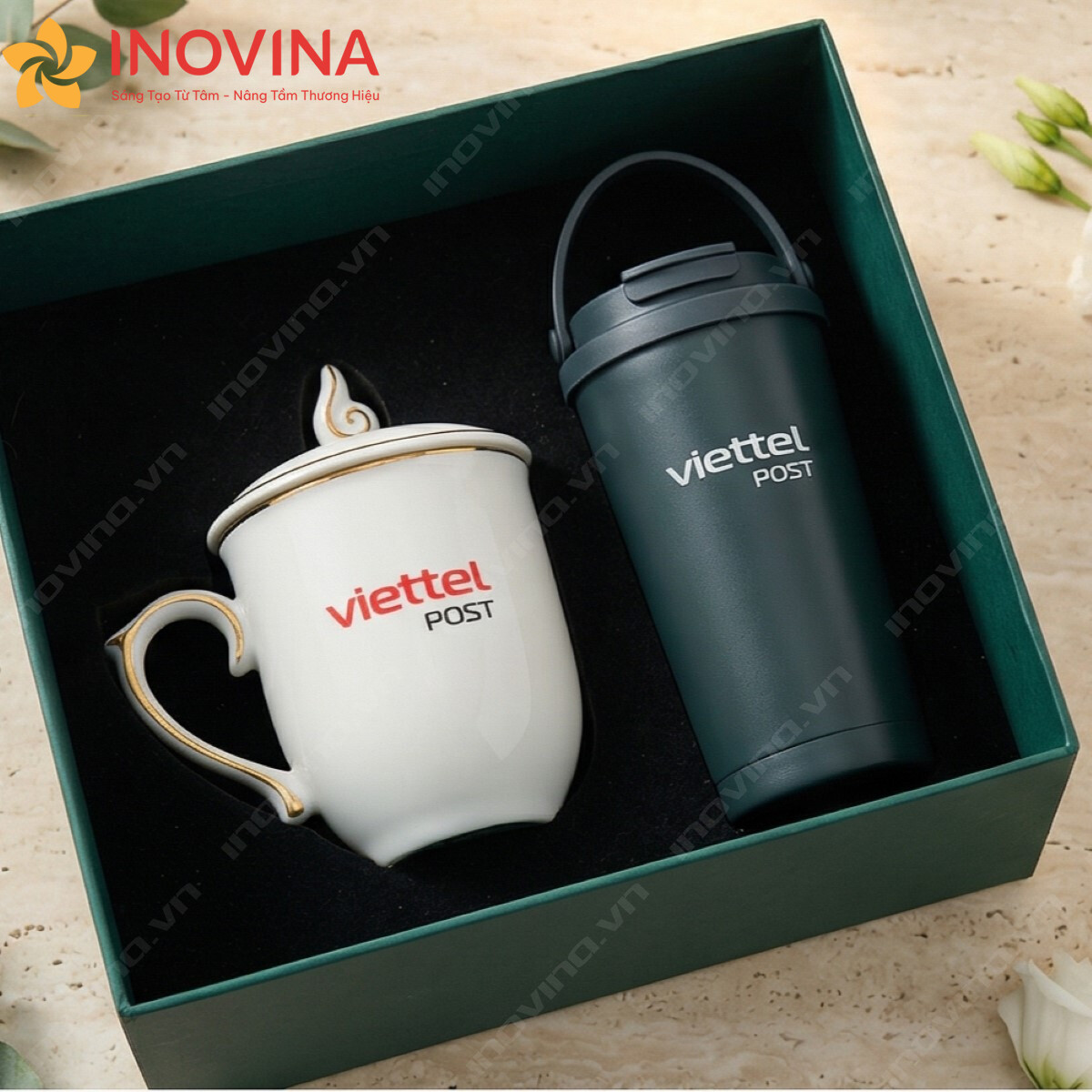Set Quà Tặng Ly Giữ Nhiệt Và Ly Sứ Có Nắp In Logo